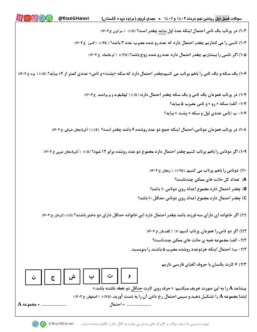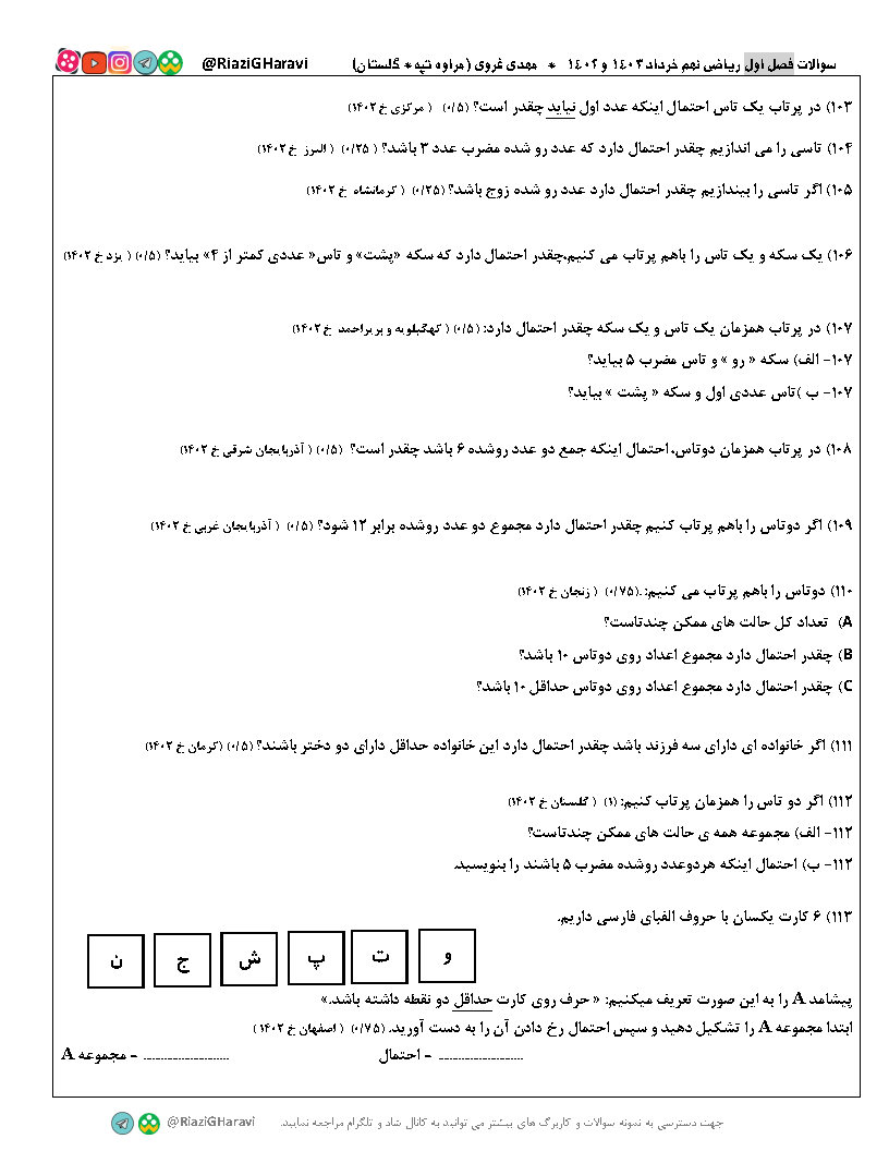 ۹ صفحه و ۱۱۳ سوال تیپ بندی و طبقه بندی شده به صورت درس به درس