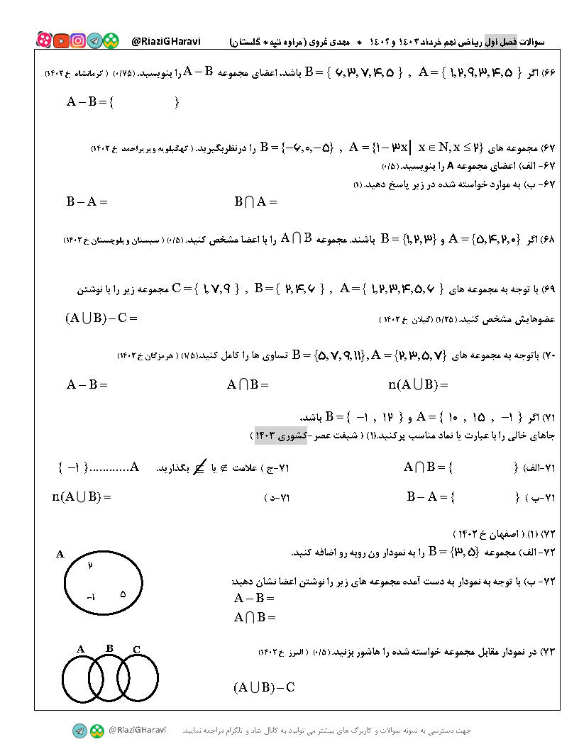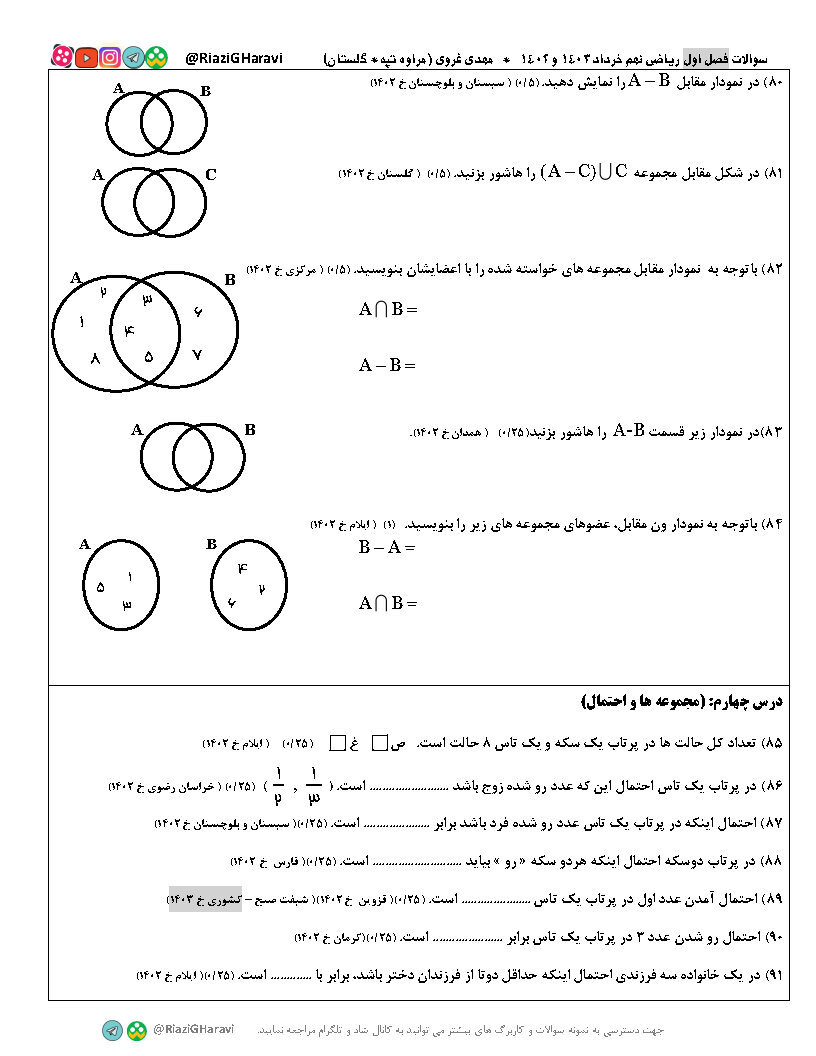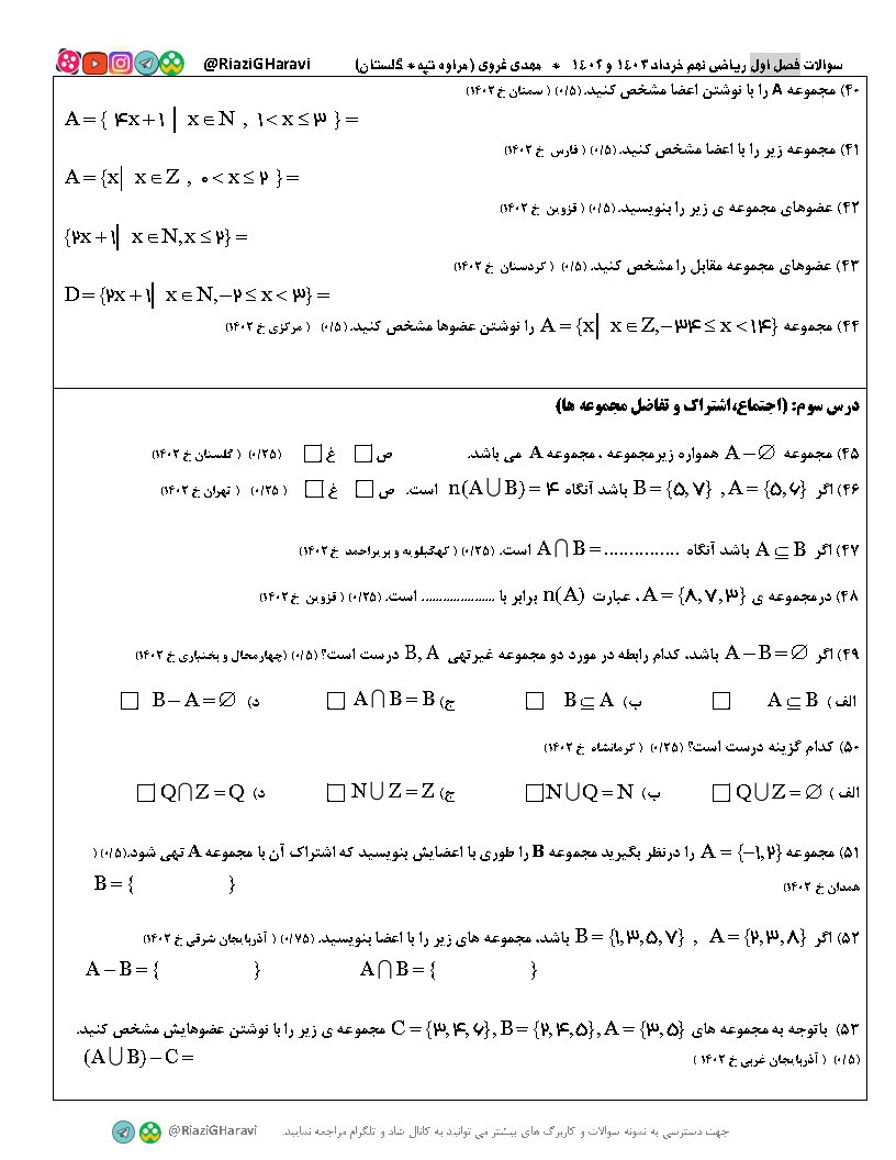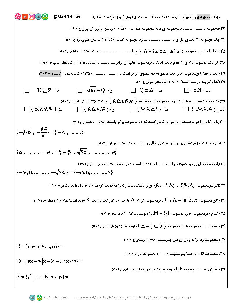 فایل WORD سوالات فصل ۱ ریاضی نهم