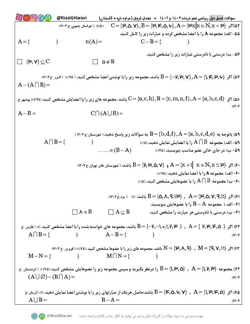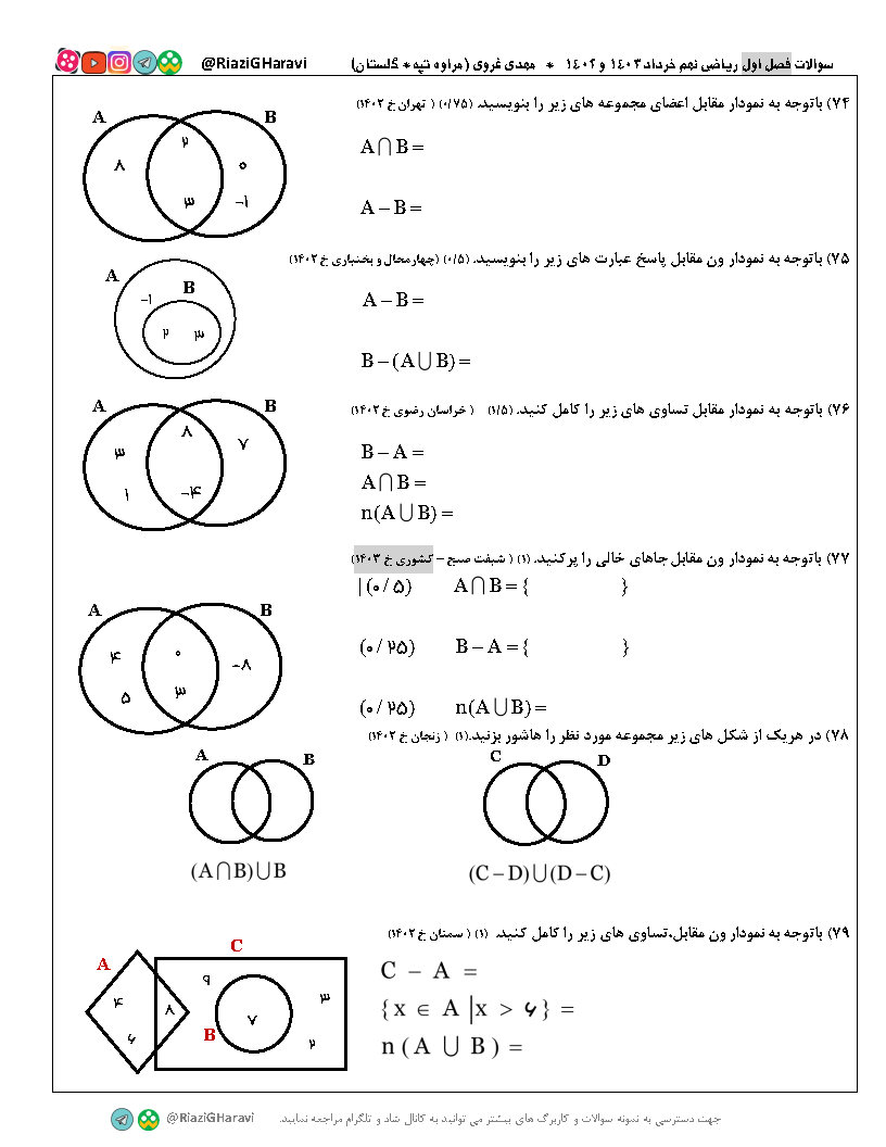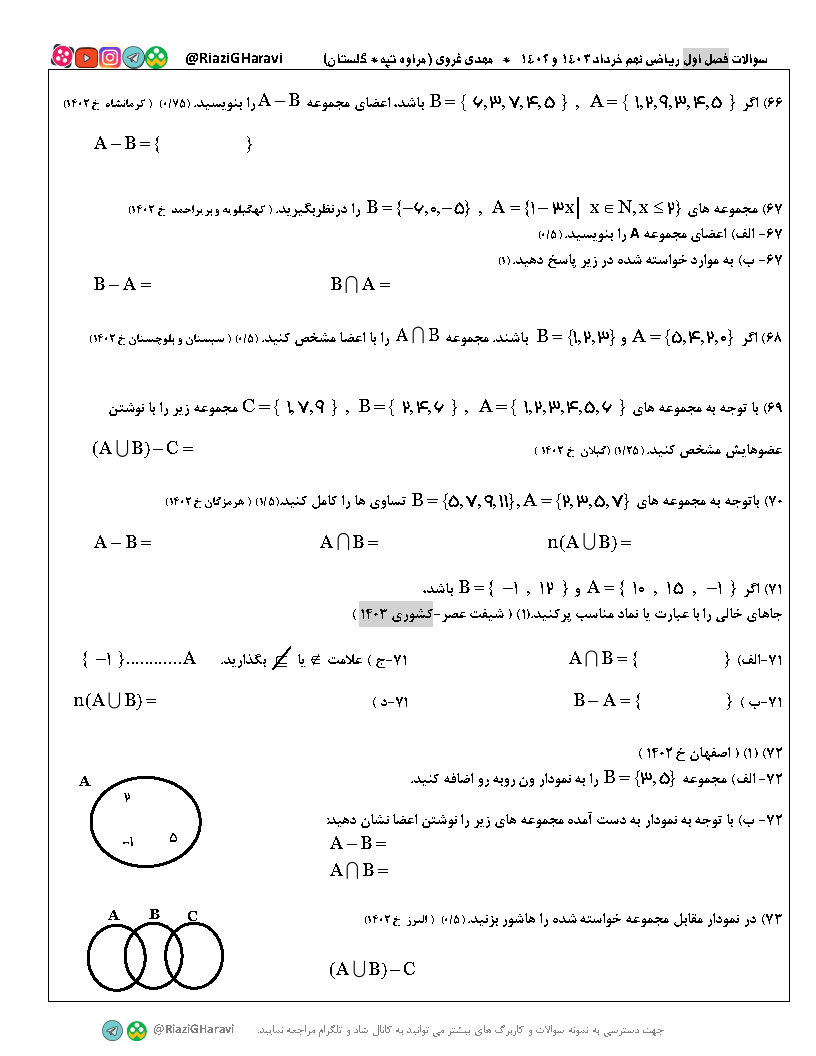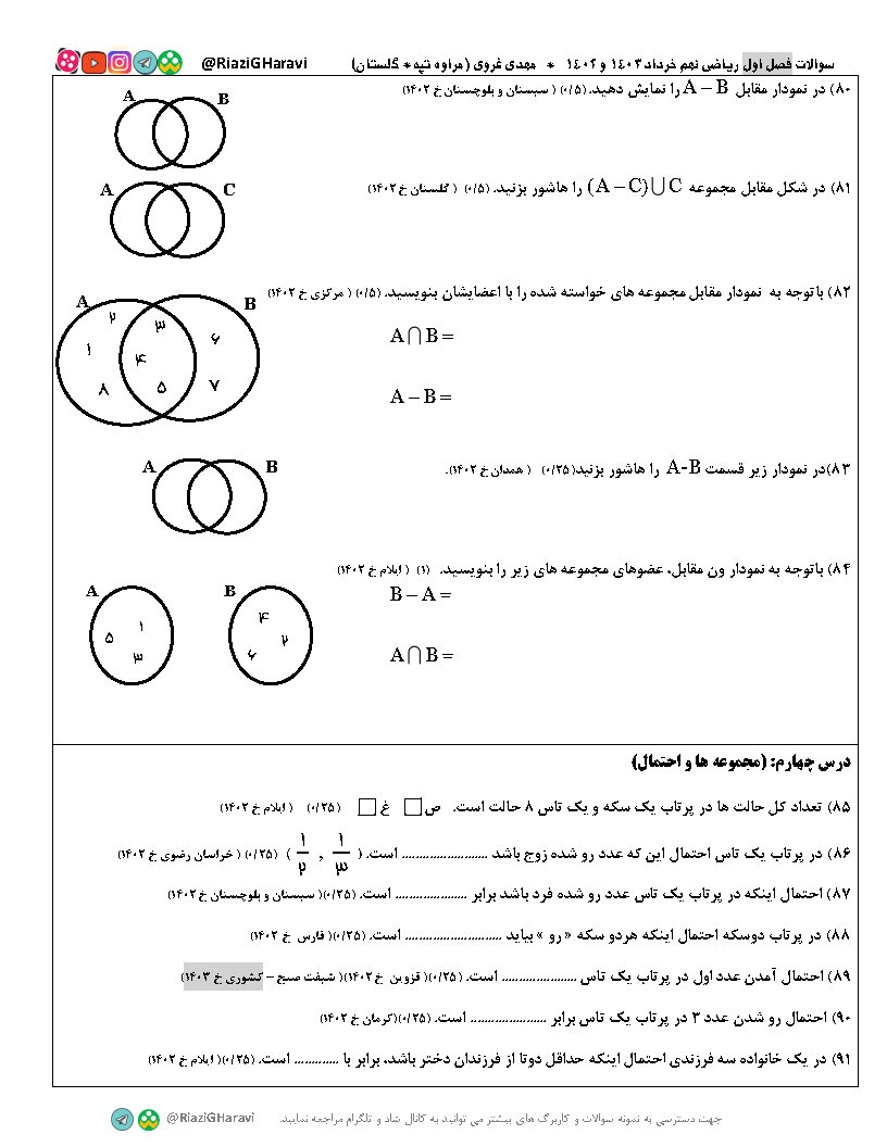 فایل WORD سوالات فصل ۱ ریاضی نهم