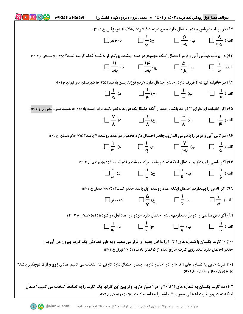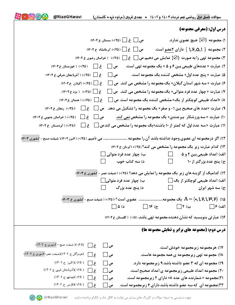 سوالات خرداد۱۴۰۲ تمام استان ها و شیفت صبح و عصر خرداد ۱۴۰۳ آزمون کشوری
