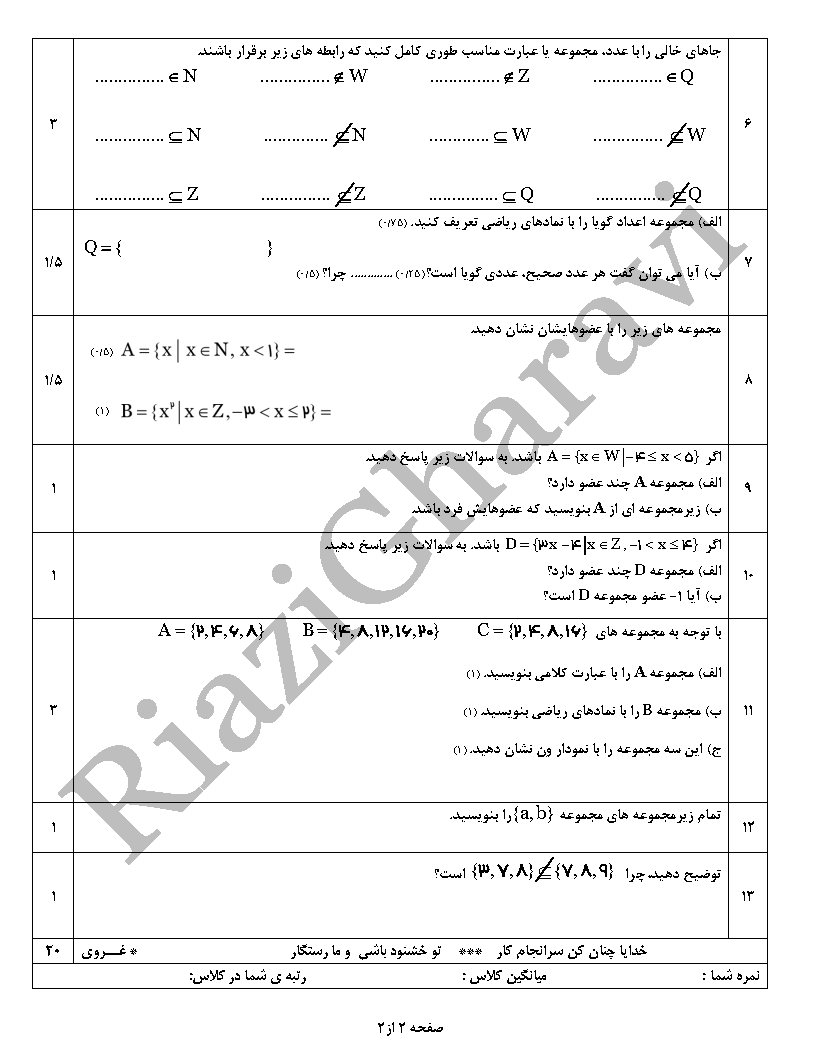 فایل word و pdf (بدون واترمارک) آزمون ۲۰ نمرای